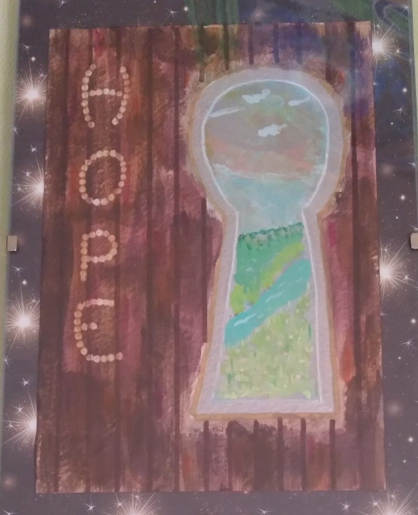 Et le plus merveilleux serait d’avoir un petit aperçu de ce qui nous attend de l’autre côté, c’est ce que vous propose Hope. Par le trou de la serrure, un coup d’oeil rapide avant de tourner la poignée, notre rêve à tous ! Ou alors, c’est parce qu’on a vu ce qui nous attend de l’autre côté qu’on reprend courage pour affronter ce qui est avant la porte ? Qui sait, certaines portes sont mieux fermées, que choisiriez vous dans ce cas ?
